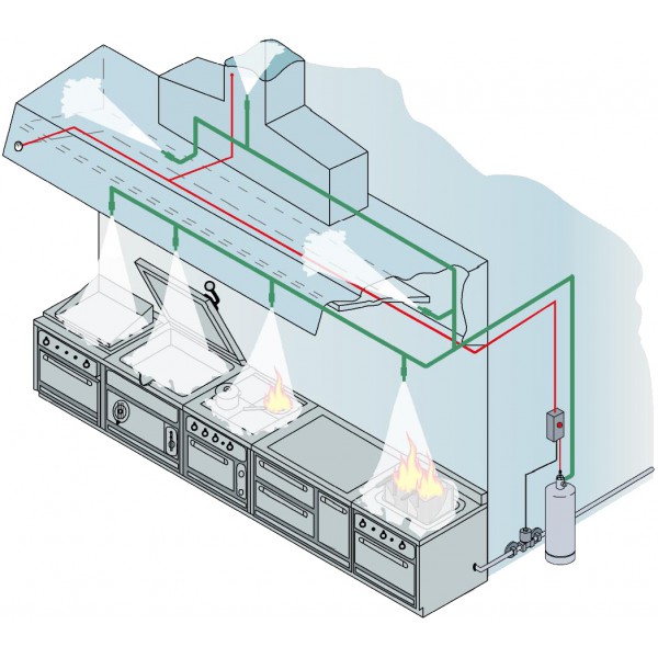 Sıcak pişirme yüzeylerinde ve profesyonel mutfaklarda, yüksek verimli yangın söndürme uygulamaları sağlar. Kimyasal madde kolaylıkla temizlenebilmektedir. Böylece kısa sürede üretime geri dönebilir. Sistemde nozüller en verimli şekilde yerleştirilerek, yangın alanını tamamen kapsayacak püskürtme sağlanır. Böylece fazla malzeme kullanımı engellenirken, hem verimli hem de minimum maliyetli bir sisteme sahip olmak mümkündür.